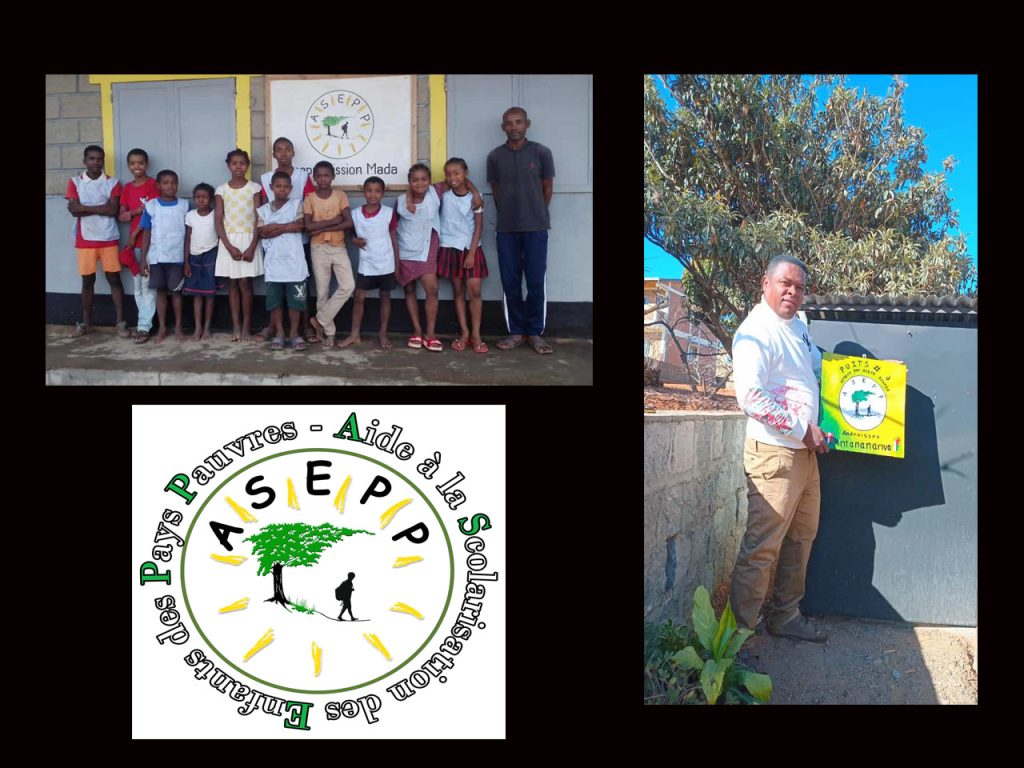 L’association A.S.E.P.P. (Aide à la Scolarisation des Enfants des Pays Pauvres), a été fondée fin 2016 pour aider à la survie des enfants en mettant en œuvre la scolarisation. Ce processus leur permet en partie d’améliorer leur train de vie et de leur apporter l’alphabétisation (lire écrire et compter) et des diplômes précurseurs d’avenir.